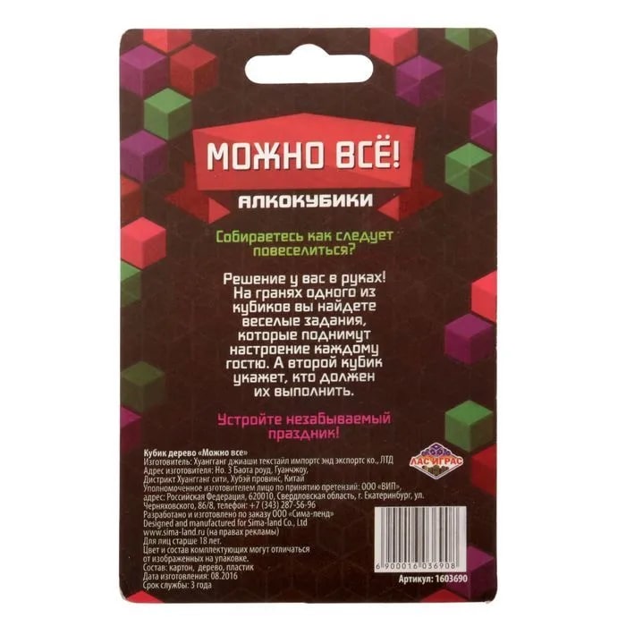 Купить кубик "можно все", алкокубики для принятия решений от 60 руб. с доставкой до пункта выдачи в Лихославле. Интернет магазин ДекаМаркет. Оплата при получении.